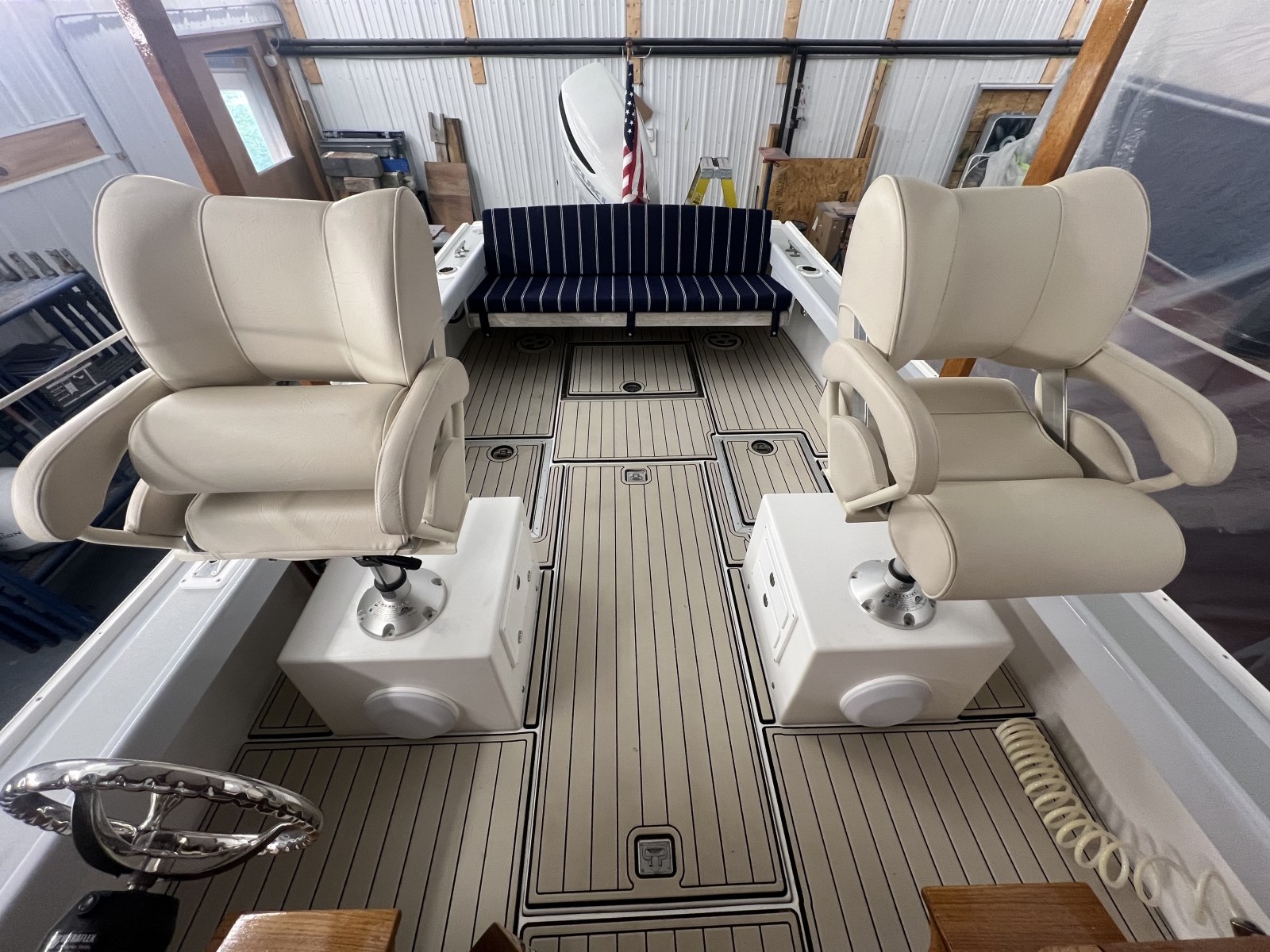 FUEL: New 60-gal tank under the floor (replaced in 2022) plus two above-floor portable tanks included (72 gal total).